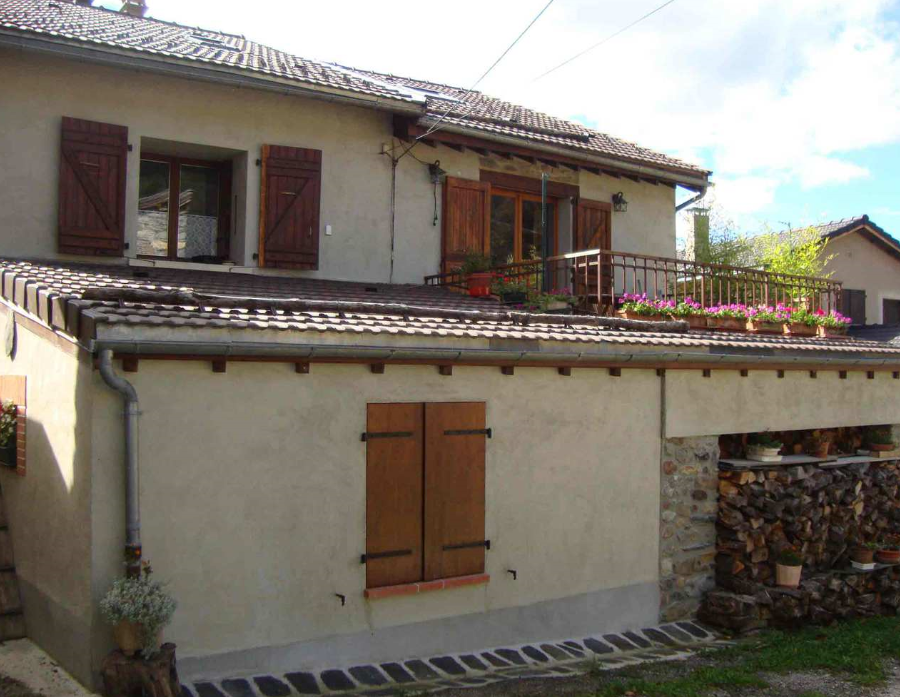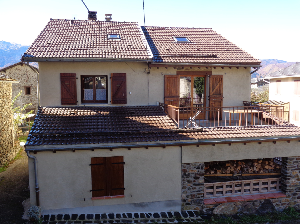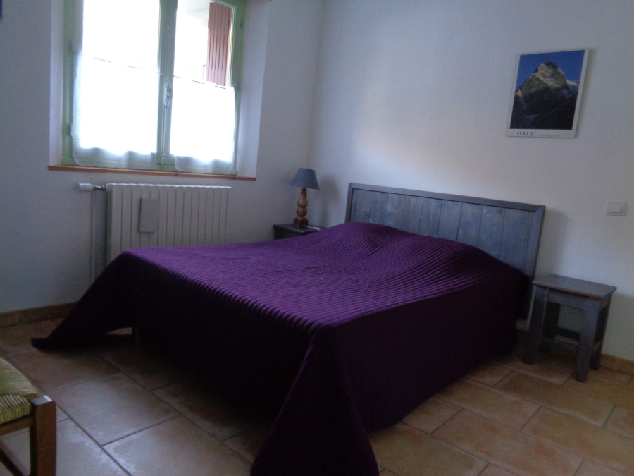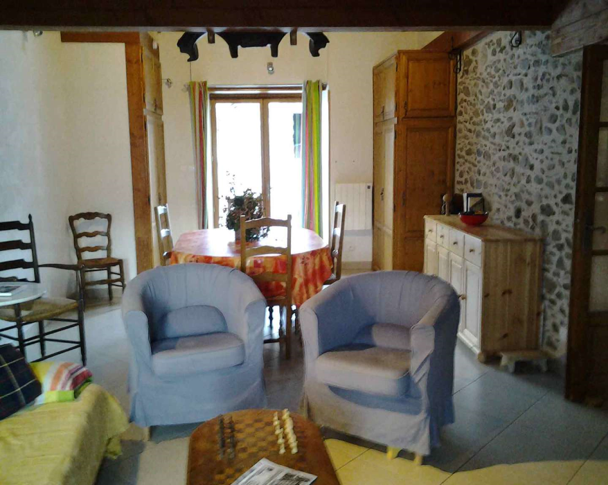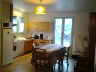 Equipée de mobilier d’extérieur : 1 grande table ronde (7 ou 8 pers), et des chaises